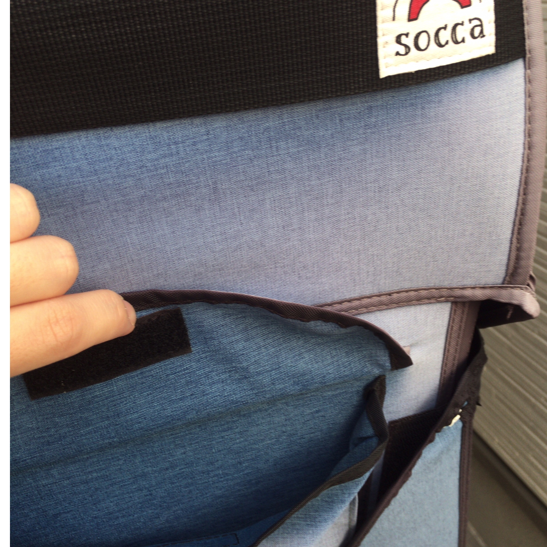 前面のフタを固定するベルトの下がマジックテープで固定出来るようになっていました。