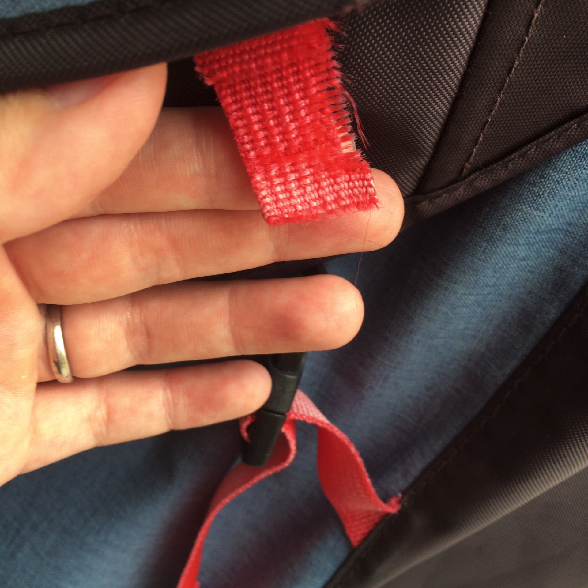 こんな感じで赤い紐部分が劣化し、留め具が外れてしまいました。