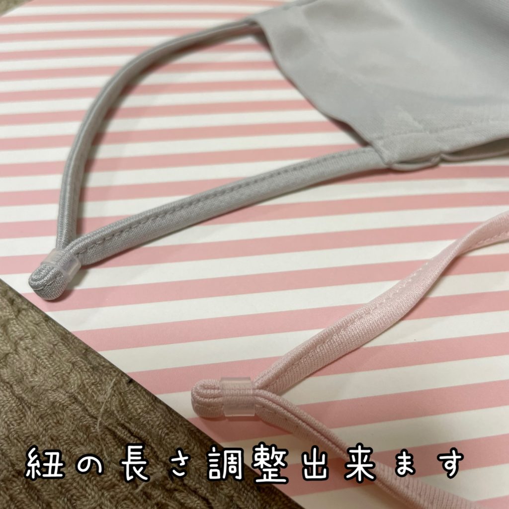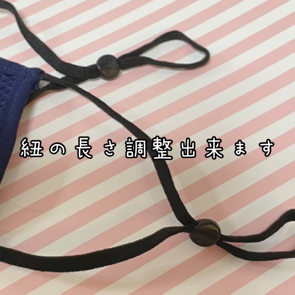 紐の長さ調整出来ます。シリコンゴムで洗濯してもズレません。